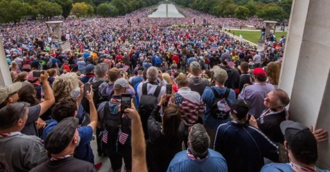 | O evangelista Franklin Graham (com microfone) liderou a Marcha de Oração 2020, contando com a participação de dezenas de milhares de pessoas, clamando pela nação. (Foto: Facebook/Franklin Graham) |